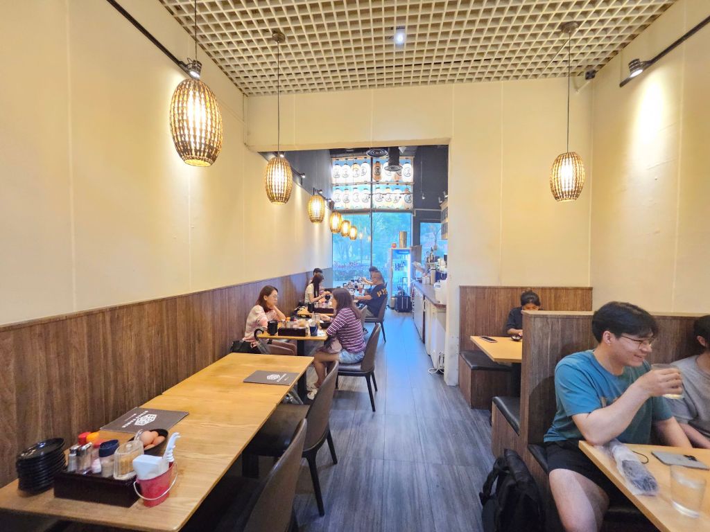 The restaurant is a longish layout with rows of tables on both sides of the space, and the entire restaurant can house up to 20 customers at any one time