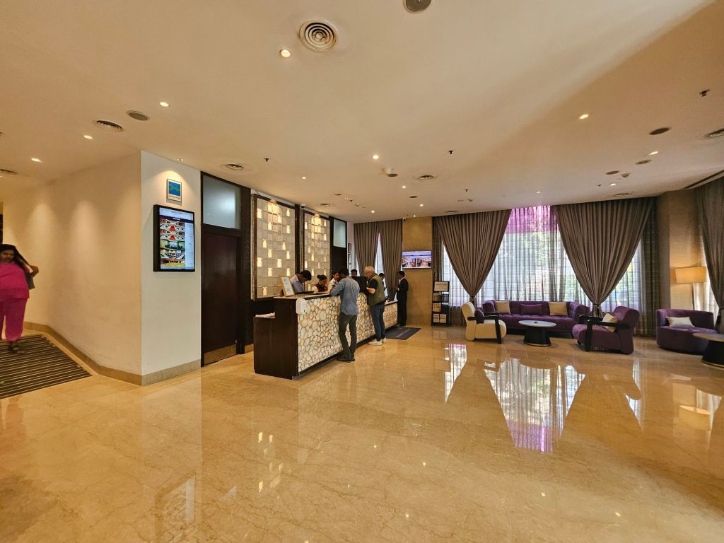 While the exterior of the hotel looks good, the interior decorations are quite dated. The lobby is spacious with a small counter for check-in and check-out for guests. The staff served a welcome drink while we waited to get checked in, and the sofas were also plenty for guests to sit down. The check-in process was fast enough, and we got our room cards within 10 minutes
