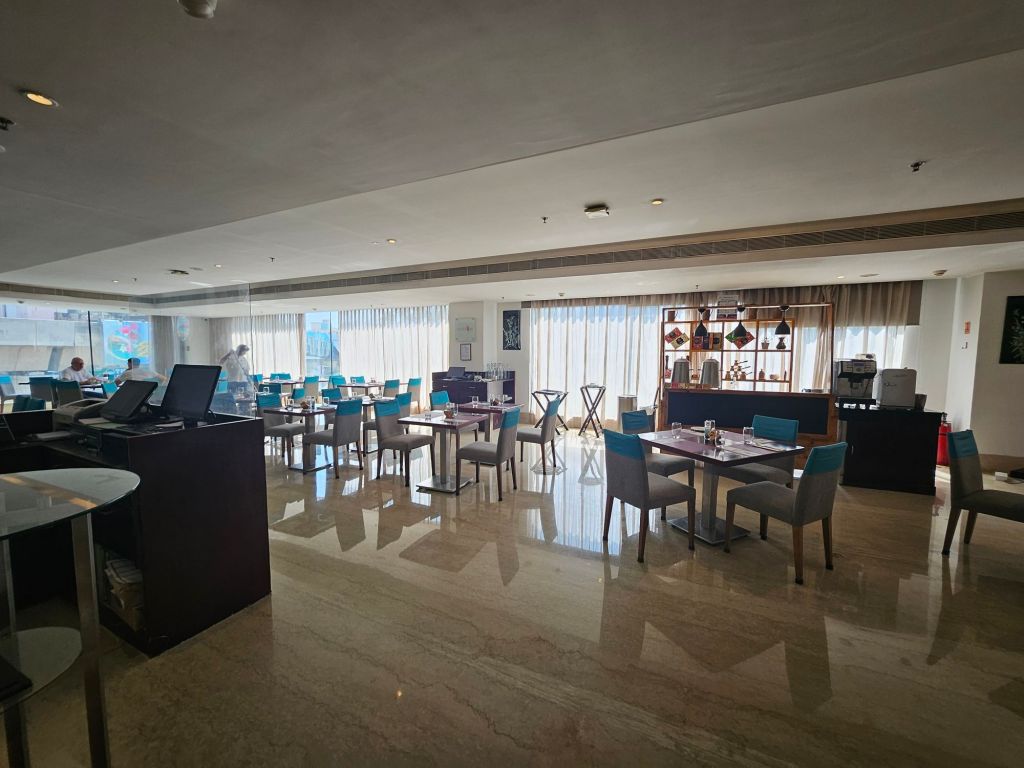 There was a restaurant located on the 2nd floor of the hotel offering breakfast as well as a normal meal. As we came straight from the airport and had not eaten, we ordered lunch. The menu was rather limited, but it was sufficient for a quick meal. I had butter chicken with naan, which was creamy and extremely spicy. The food was decent, and the service was ok, no doubt a bit slow in serving. The buffet breakfast is served in the same restaurant and has a limited spread with 70% of the offering more localised fare, while the rest of the 30% catered to the International crowd. As I was on a business trip and wanted to avoid any tummy problems, I only went for the hot food, which was just toast and fried eggs