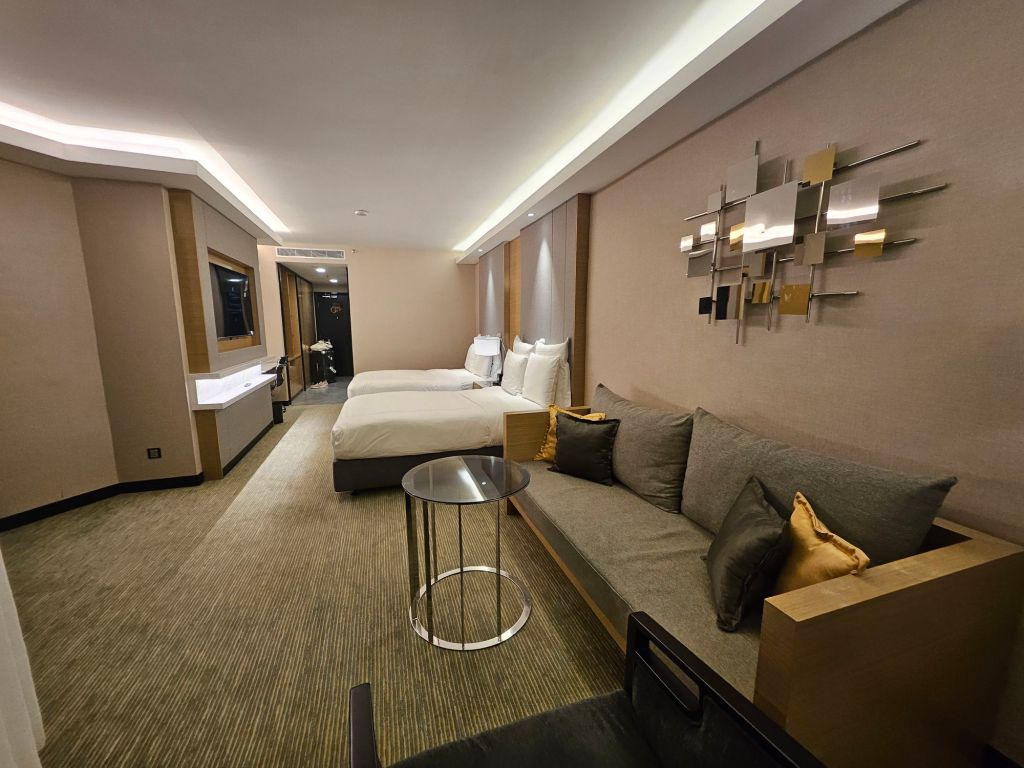 The first room we got was a windowless room, but it was extremely spacious to make up for the lack of windows. There was a huge lounging area with a full 3-seater sofa and coffee table. The bed was sturdy with firm support and 4 different pillows to choose from, and the lights were very bright to also make up for the lack of natural lighting