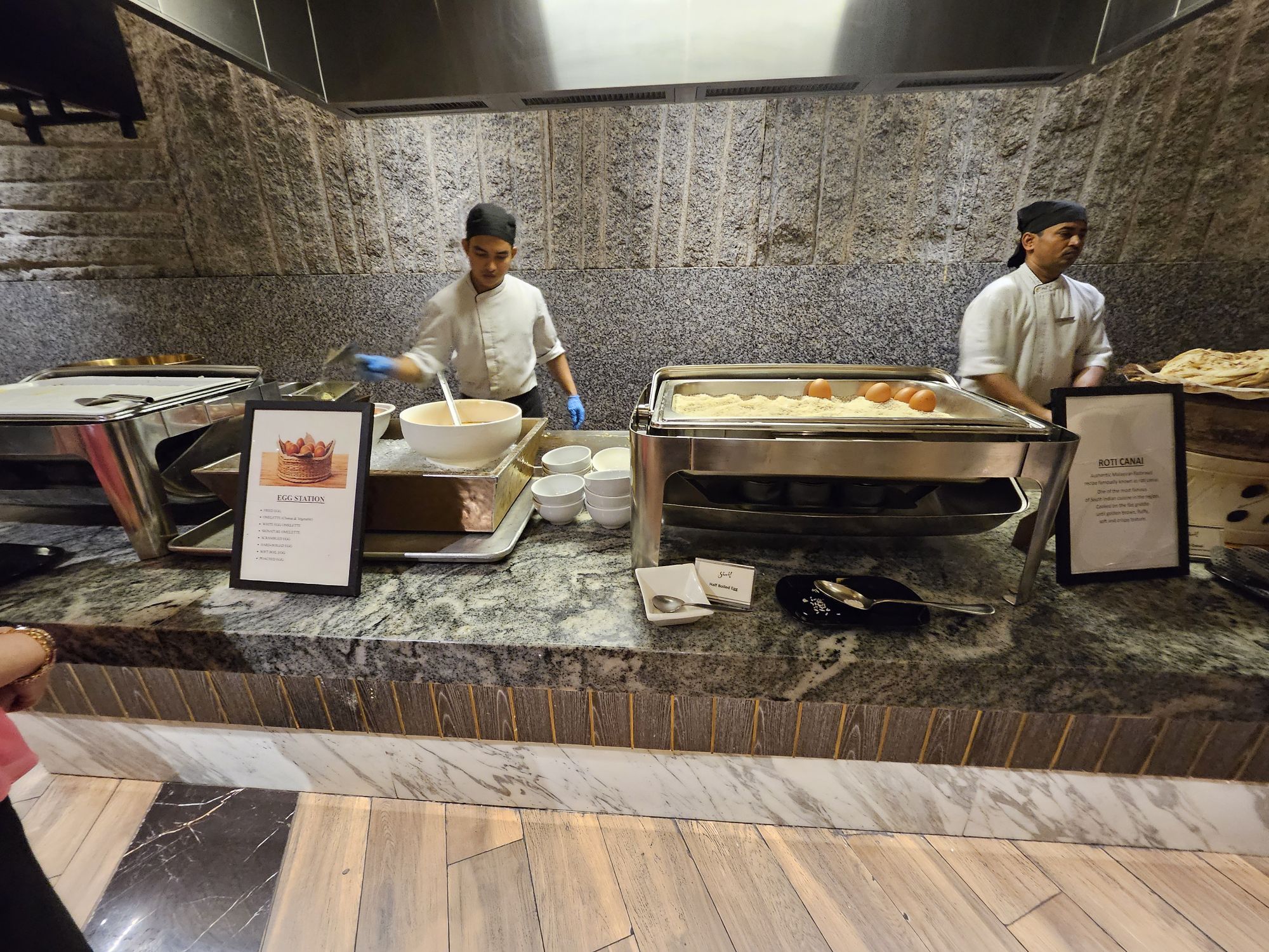 They also had live cooking stations offering soup, noodles, and porridge, local delights like nasi lemak and roti prata, as well as eggs cooked to order