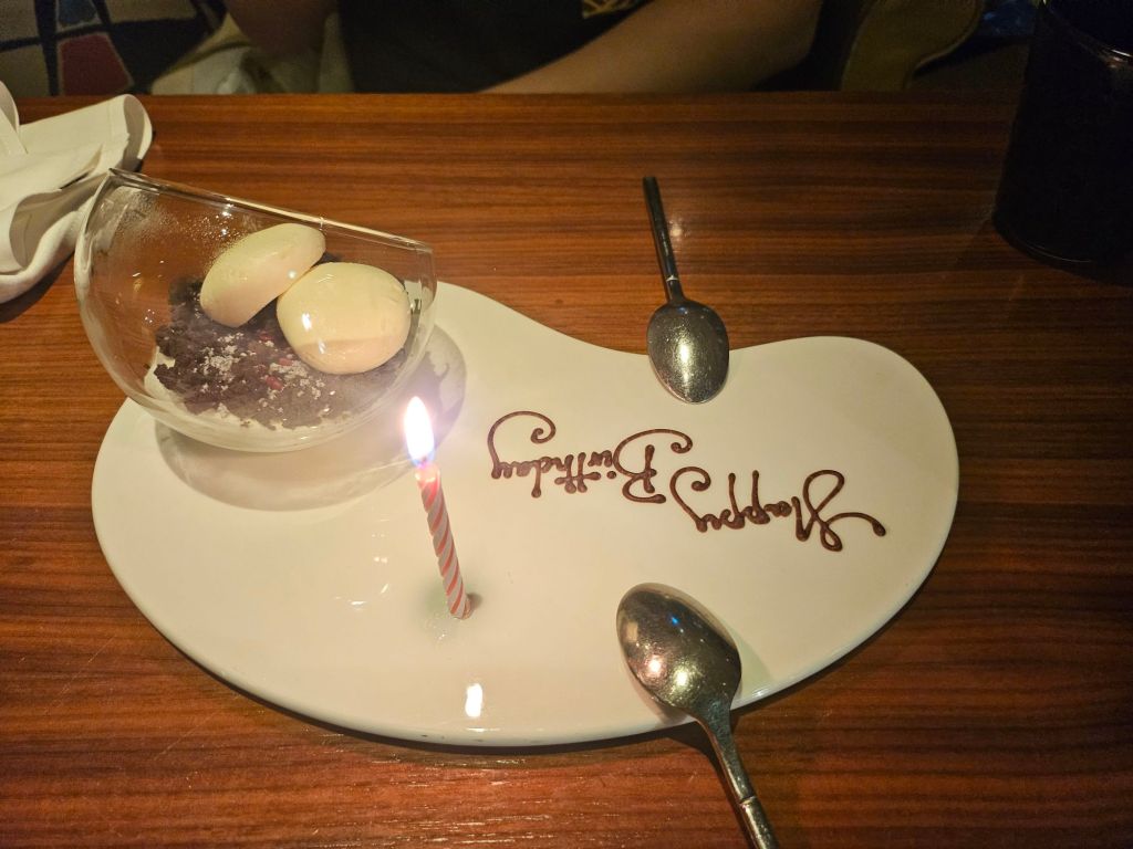 Last but not least, they served us a Birthday dessert which had a mixture of crumble, chocolate, and ice cream served in a cup