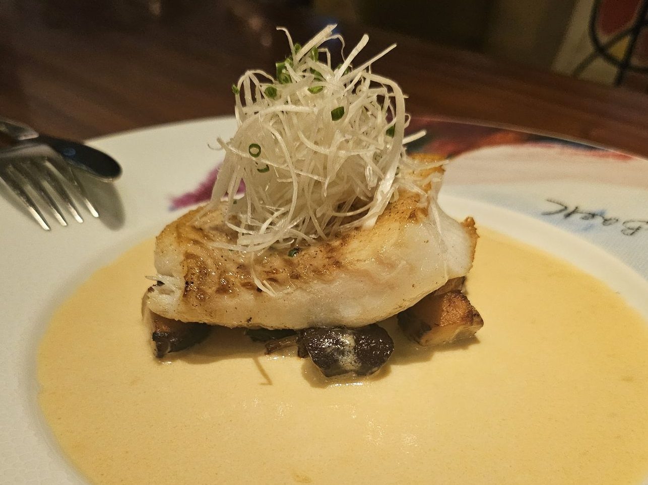 We had the seabass with saffron beurre blanc sauce and romanesco broccoli as one of our mains. The fish was smooth and soft and melted in our mouths with a light charred flavour on the skin and sides. The creaminess of the beurre blanc sauce paired well with the fish, and the dish was clean and tasty