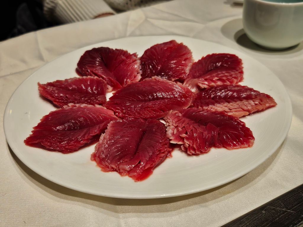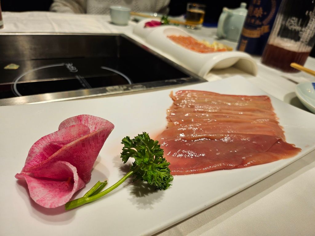 The plating of the dishes was wonderful, with either flowers carved from vegetables or meats plated to look like a floral design. We ordered a few of their special dishes, like the duck intestines, pig kidney, and luncheon meat, as well as waxed meat. While the ingredients are relatively fresh, the selection was limited as they focused on more expensive items like seafood and live fish. Other than beef, they also had a few options for other kinds of meat