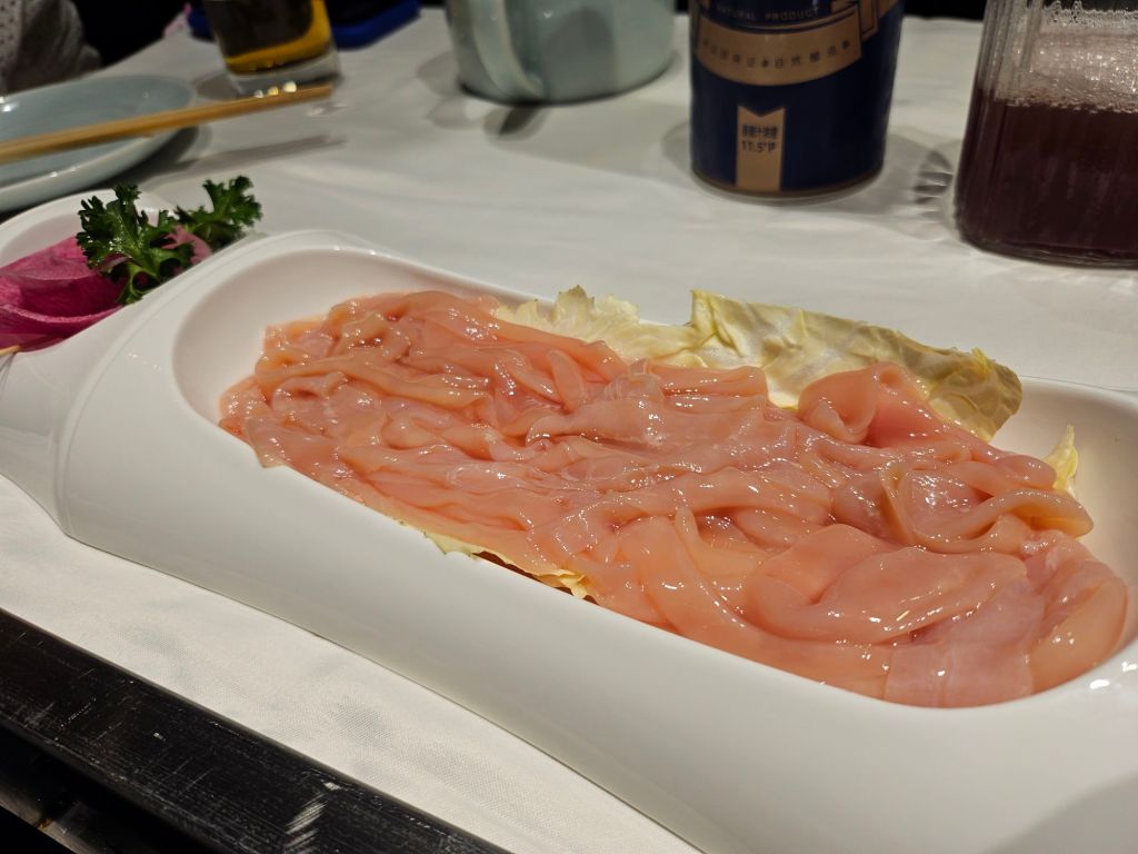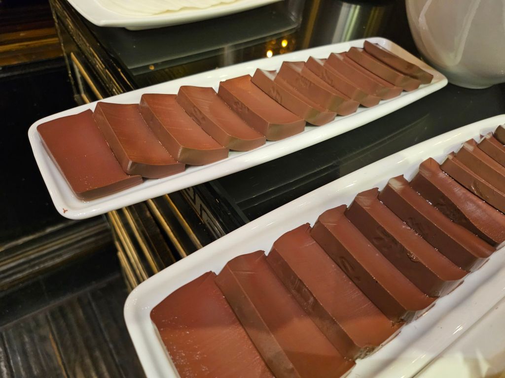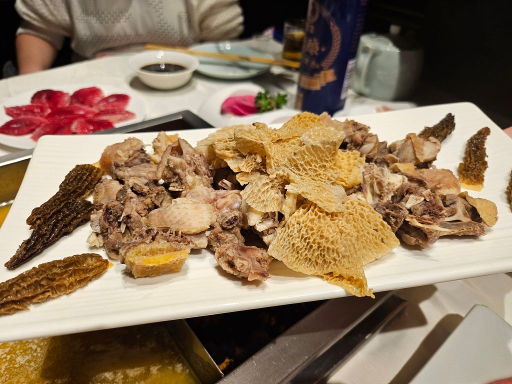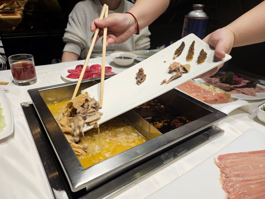 Overall, the flavour and spice level of the soup is more catered to foreigners, although you can adjust the spicy level for locals. The dishes are also plated elegantly and cost more than the usual hotpot restaurants in Chengdu. It was affordable for us due to the exchange rate, but it is considerably higher priced. The service staff was great and were very polite and attentive, and even though we were in the private room, the staff were still catering to our wants and requests quite promptly