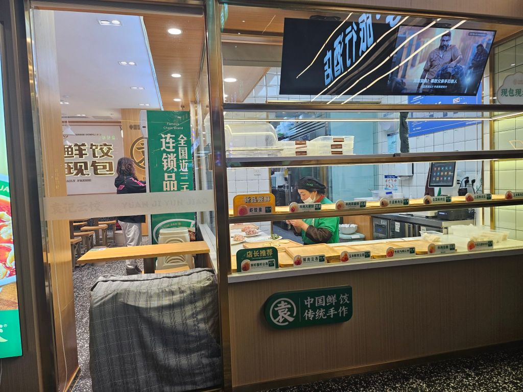The store stands out with its familiar green signboard as one of China’s most popular dumpling stores and sells up to 30 billion dumplings in a year. The store was relatively empty as we came out for dinner pretty late