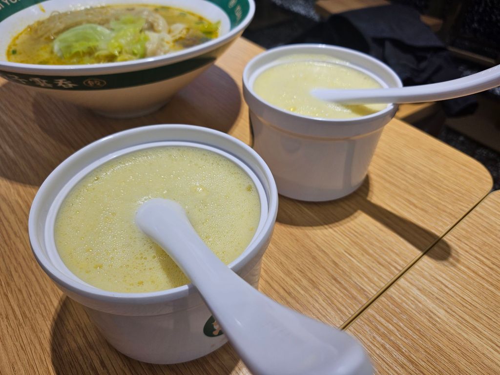 They also have pan-fried dumplings, blanched vegetables and desserts. The fried dumplings have crispy skin with juicy fillings, while the vegetables were just plain but refreshing. The desserts we had were sweet corn juice, which was partially sweet and savoury. I remember having green bean and red bean soup at the Lijiang outlet, but it was sold out here