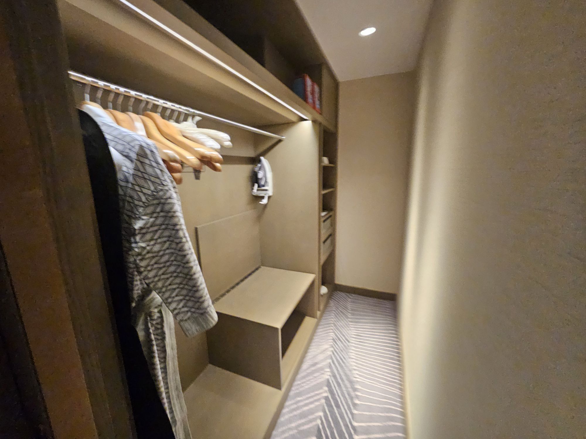 As there were 5 of us, we were offered an upgrade to 1 suite room and the other a twin room so that both rooms can be opposite each other instead of getting a twin room and adding a rollaway bed. It added up to be more value for money, so we went for the option. The suite room was ready first, which has a huge living room, and the sofa could be converted to a bed, a working desk area, and a bathroom in the living room. There is also a bar area with a wash basin, a fridge, and a coffee machine. The master room has a walk-in wardrobe as well as an en-suite bathroom, a king-sized bed, and a make-up desk area