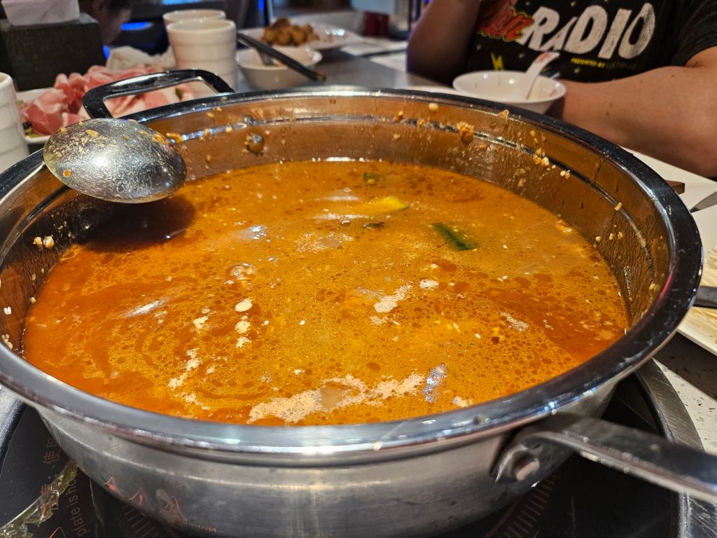 After we were almost done with the prawns, the staff helped to add a basic bone broth to our pot to make it into a slightly spicy prawn broth to cook our hot pot ingredients