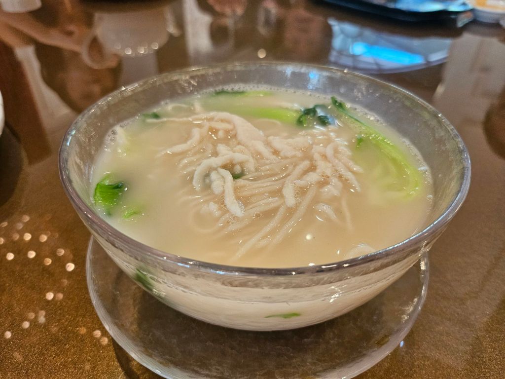 For our carbs, we ordered a braised noodle soup with shredded chicken and supreme broth and braised e-fu noodles with crab meat. The E-fu noodles were cooked perfectly with soft and chewy noodles, which absorbed the flavours of the braised sauce and mushrooms. The chives provided a nice crunch and light spice. The braised noodle soup was specially ordered for my mum as it is easy on the stomach and less oily. The broth was light but flavourful, and the noodles were soft and easy to eat and were really comforting for the stomach