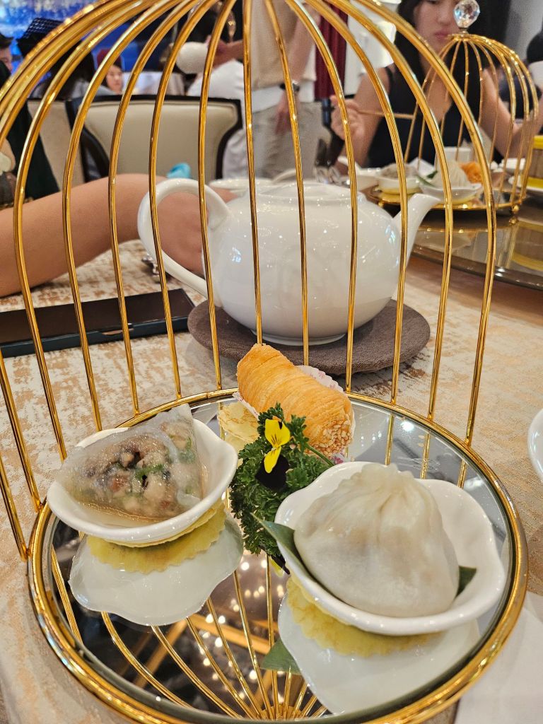 We also ordered a dim sum set, which included 3 types of dim sum. Each set came served in a golden cage structure, which was pretty and great for pictures. The dim sum included in the set includes: deep-fried white turnip puff, steamed xiaolong bao and vegetable dumplings. The set took quite a while to be served, and I would think it took time for them to display the food in the cage. There should also be a limited number of cages. The dim sum itself was decent, and the flavours were nice, with the xiaolong bao being the more popular one