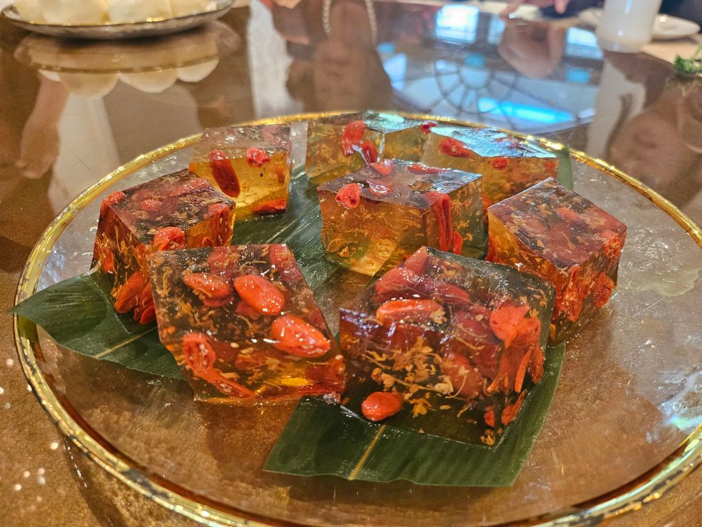Last but not least, we ordered 2 of our favourite desserts: the osmanthus pudding and fried soufflé egg white balls filled with banana and red bean paste. The desserts did not disappoint and were really the best ending to the meal. The soufflé was fluffy and eggy, with the red bean paste giving the perfect sweetness, while the osmanthus pudding was lighter on sweetness but greatly perfumed with the fragrance of the osmanthus flowers