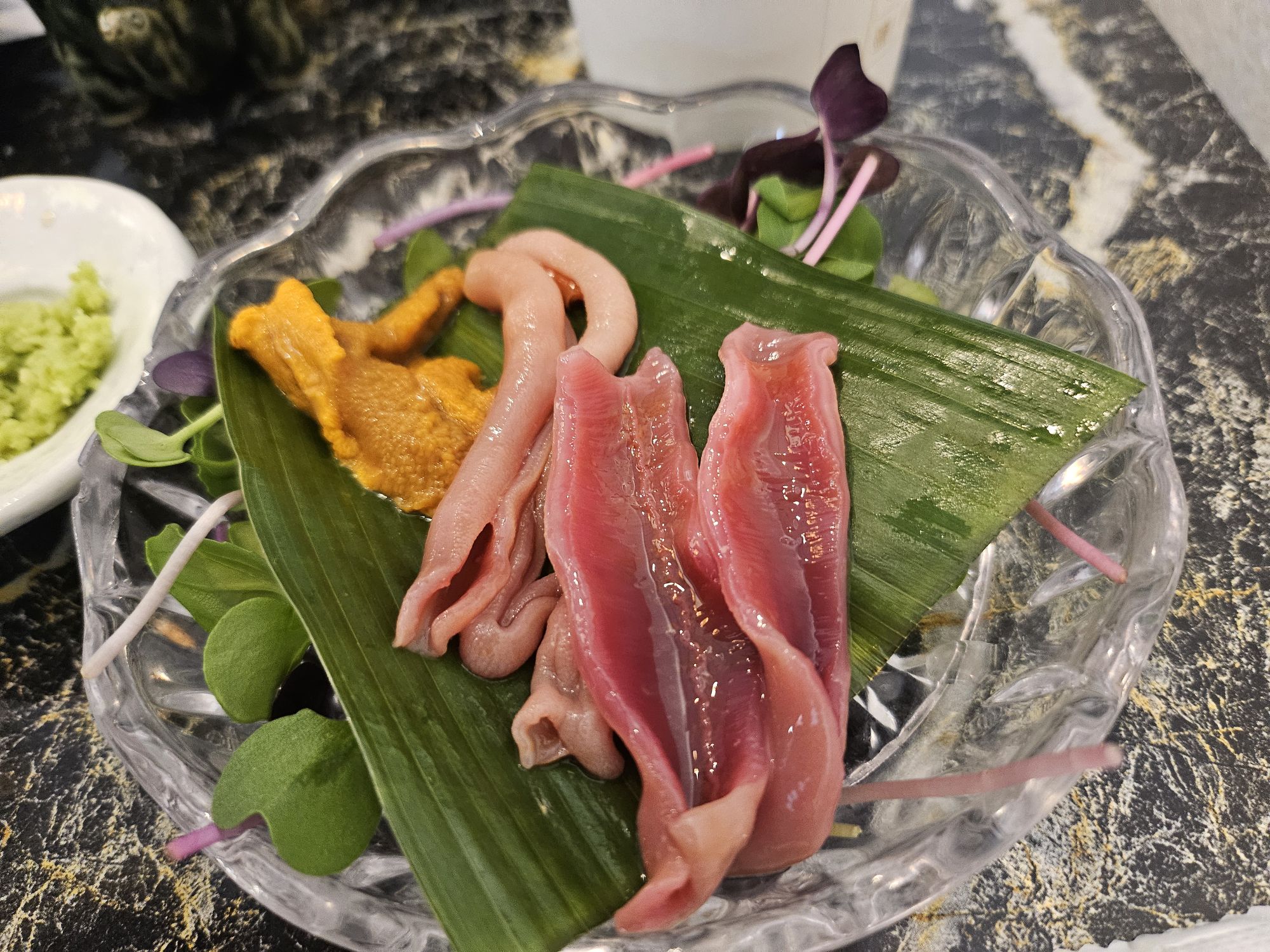 After we took pictures of the lobster, the staff brought the lobster into the kitchen for preparation while we ate the other sashimi. The sashimi was very fresh, and the sea urchin did not have any metallic taste to it. Most of them had crunchy textures, and not everyone liked them. My friend, who was with me, did not really enjoy these sashimi as she is used to the Japanese type of sashimi. The taste was mainly strong sea umami flavours, which paired well with the spicy gochujang sauce