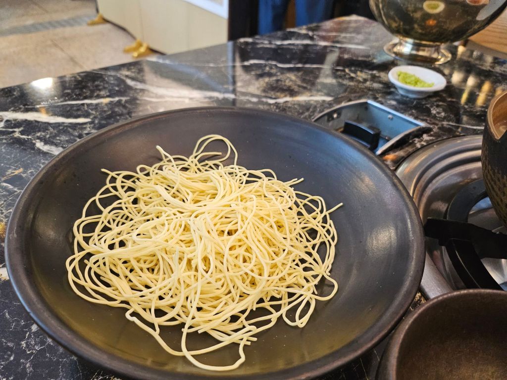 Last but not least was the seafood soup from the remaining parts of the lobster and some added mussels, clams and scallops. The soup was surprisingly light and refreshing with the use of radish and green onions. Instead of an overpowering, deep-flavour soup, it has a light flavour which warms your stomach after all the cold dishes before this. There were also noodles provided to be added to the soup