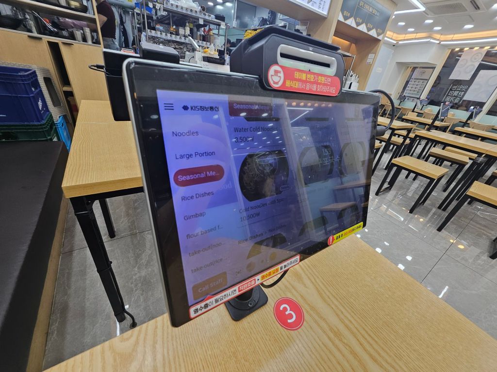 The restaurant set up is simple and almost like a fast food restaurant, where tables were close to each other with matching stools and a brightly lit environment. Each table came with a tablet order system in different languages, so you do not need to interact with the staff. You can collect your food once your number is called, and most of the staff are actually foreign staff and not local Koreans