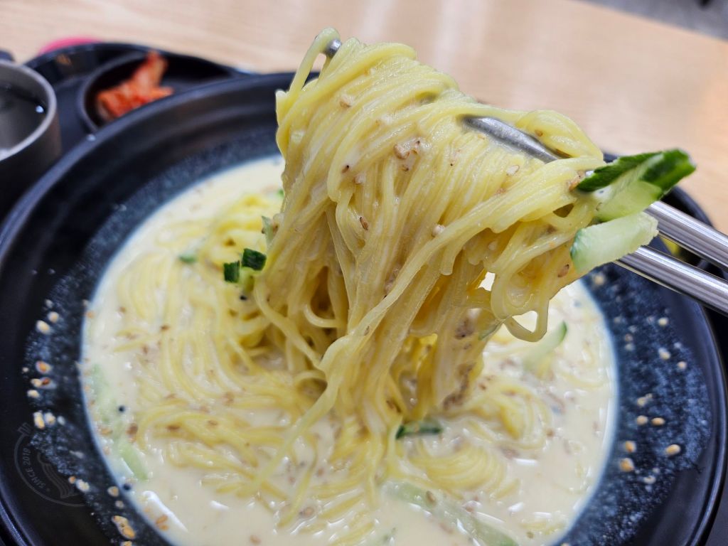 Since I did not have time to visit my favourite Kong guksu place during this trip, I settled for the bean noodles offered in the restaurant. The noodles used here are not the usual ones used for Kong guksu, so the texture was quite weird. The broth here is lighter and more watery, with a lot of sesame seeds and limited cucumber strips. The flavour is not bad, but lacklustre if compared to my favourite shop. The bean broth is too liquid for me, and the yellow noodles just did not do it for me
