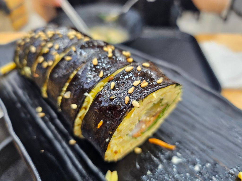 My friend had the mandu soup and egg gimbap set, which was quite bland in flavour. The gimbap is made of egg strips instead of rice, so it was a very light roll with nice savoury ingredients like ham and vegetables. My friend did not like it, but I found the gimbap ok but the mandu soup quite mediocre