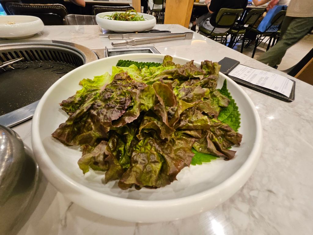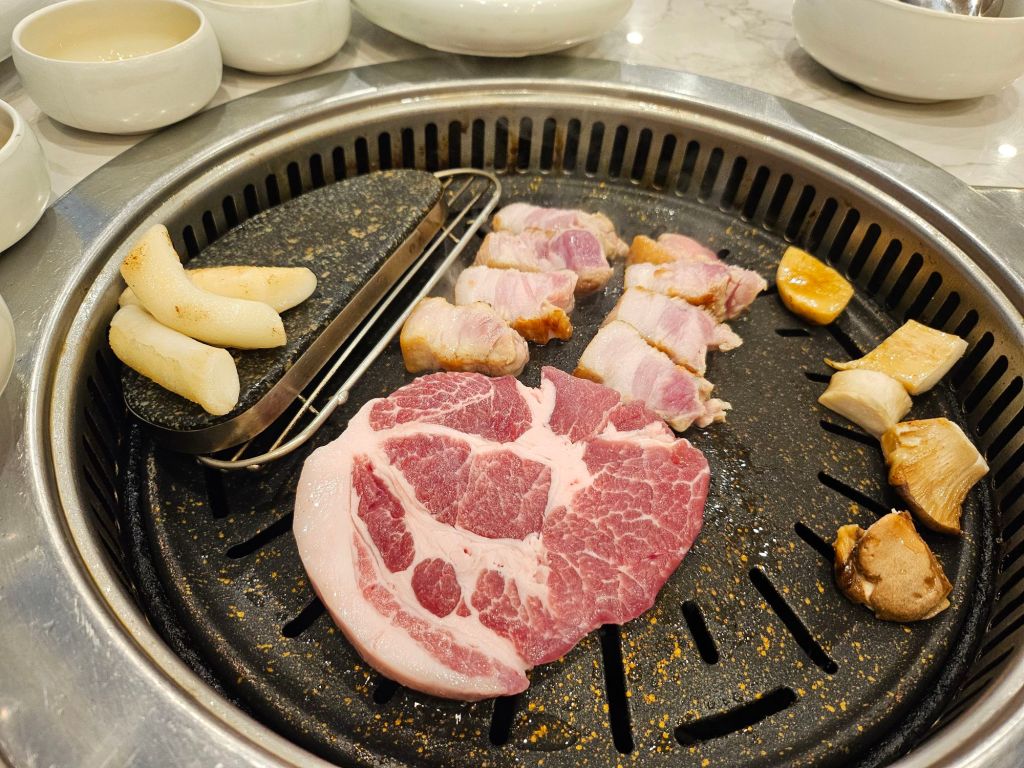 The staff will assist in the grilling of the meat, and since I was alone, I only ordered 1 piece of pork collar and 1 piece of pork belly. Each meat order came with rice cake and mushrooms, which were grilled together with the meat. Each piece of meat is grilled quite perfectly with a nice charred side on the meat with slightly crispy skin without any burnt bits. The meat was juicy and perfect with the vegetable wraps, and they are also not too expensive