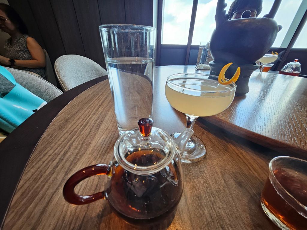 The parents’ day imperial high tea set at SGD 48 (before tax) comes with one tea or coffee and a welcome cocktail. The cocktail drink has osmanthus rice wine. For the tea, you can choose between pu’er, longjing, dahongpao, huang ya and dian hong. The tea is served in an individual small glass pot with its own warmer stove