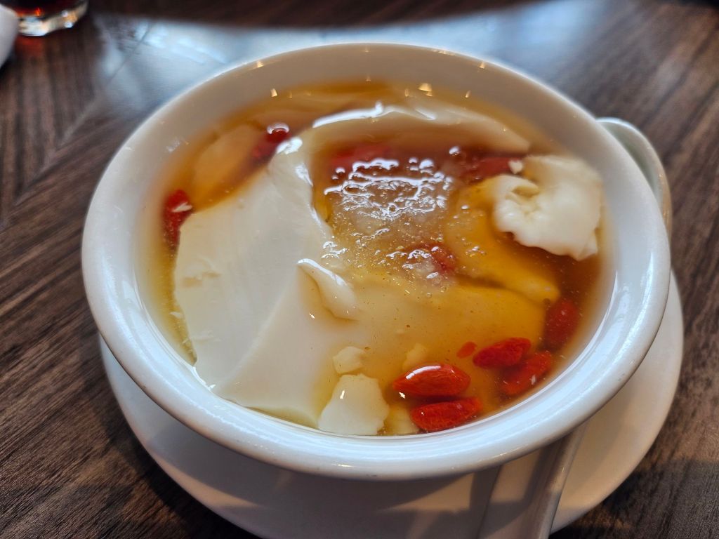 For desserts, there was the homemade beancurd with wolfberries in syrup. The beancurd was smooth, and you could taste the light bean flavours. This was a nice dessert to end the meal, and easy on the stomach since it was not too sweet