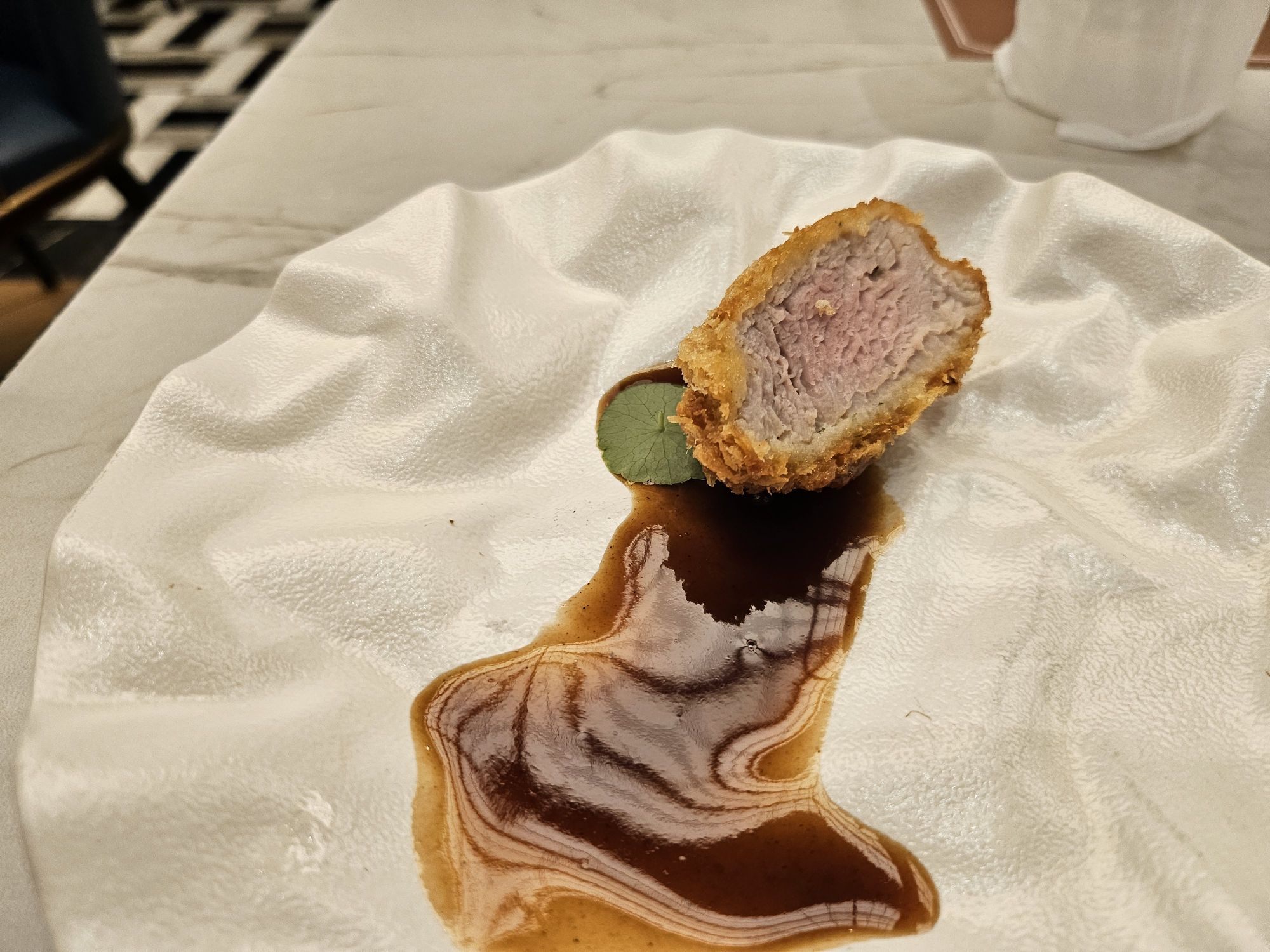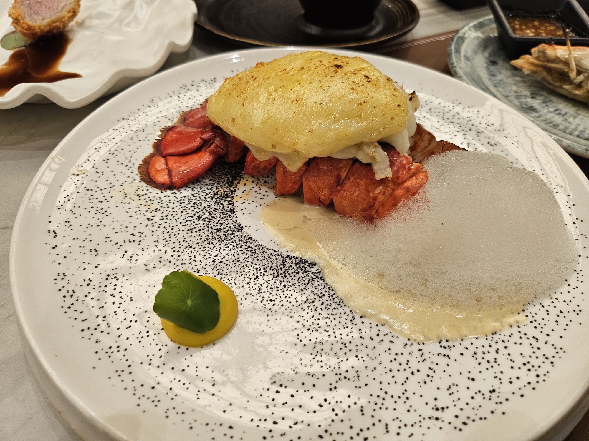 The next batch of items was from the giant menu, where we ordered about 20% of the items just to give them a try. They range from Japanese Tonkatsu, seared scallops, tofu in foie gras, seared fish, abalone tarts, prawn with corn foam, lobster bisque, and many more dishes that I cannot remember. To be fair, expecting every single dish to be perfect is quite demanding. Some dishes were better than the rest in terms of flavour and the way they were cooked. I was impressed, however, with the immaculate plating for every dish which was served to us. Even though this was a buffet, the dishes were plated and served like a fine dining restaurant
