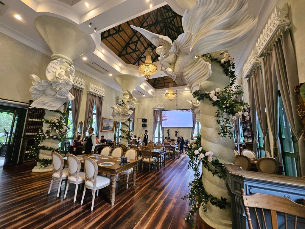 The first area you enter from the old architecture-inspired building is like the main dining hall with air-conditioning. Filled with Roman pillars and a centrepiece staircase, this was perfect for intimate wedding events or parties. Full of fake flowers, greenery and Italian sculptures, the hall feels very Italian in atmosphere