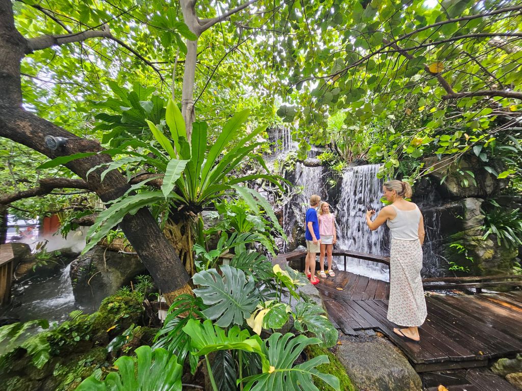 Just when I thought that was it, I continued walking and discovered a different area which housed birds, a real, flowing, artificial waterfall, small Hobbit houses, which was a bar, beach hut styled area serving mostly local delights and many different houses for private functions and parties. I took a good 20 minutes exploring and taking pictures before returning to the main dining hall. It also seems like there are multiple entrances, as I witness locals coming in through different areas
