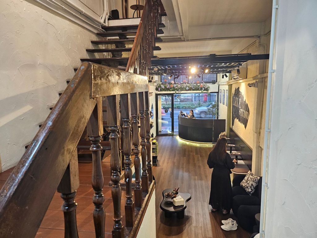 A short walk from BTS Bang Chak, LeLe Studio is nestled along a stretch of shop houses with a modern, chic salon design. The first storey houses the reception, the guest toilet, the waiting area, as well as a display area for their hair and herbal products