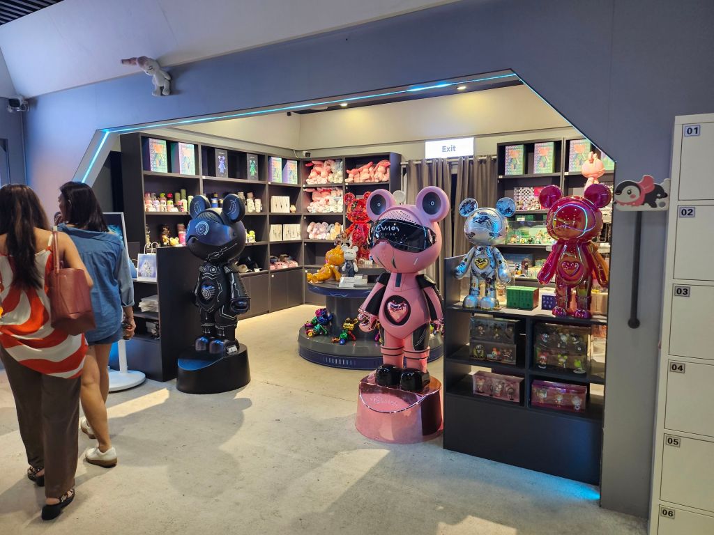 The exit is connected back to the entry point where there is a small merchandise shop with a mixture of items