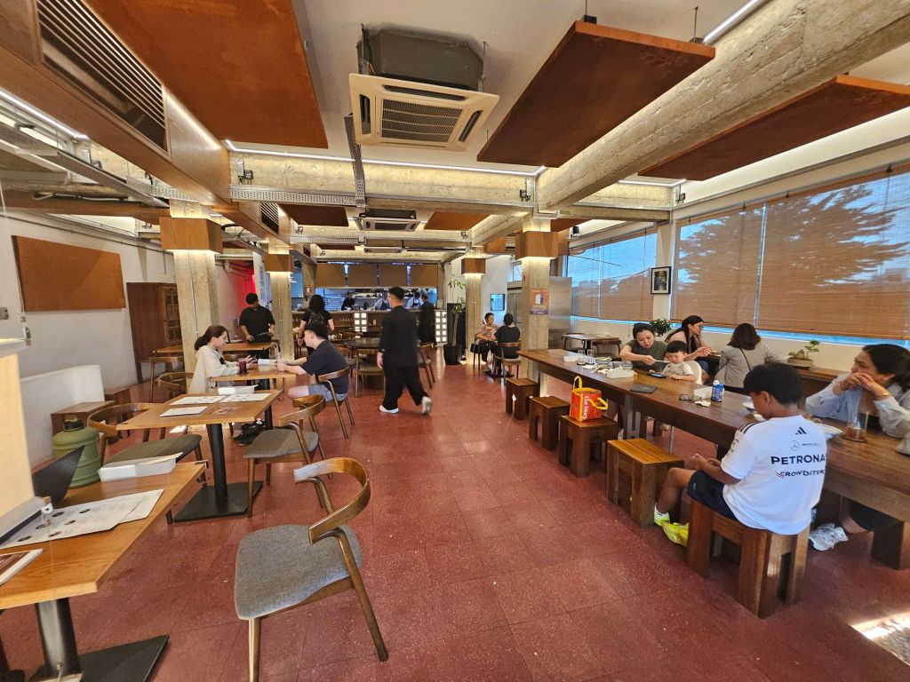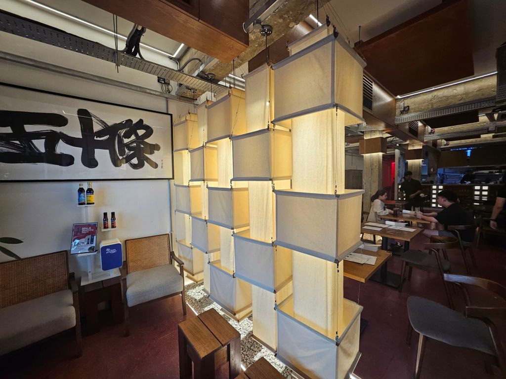 The space is modern and dressed with minimalistic furnishings from the long wooden table to individual tables, complementing the overall woody and warm decor. The Chinese name of the restaurant is Wu Shi Tiao – playing on the English name of Fifty Tales, and also cleverly incorporating the word ‘strands’ representing noodles