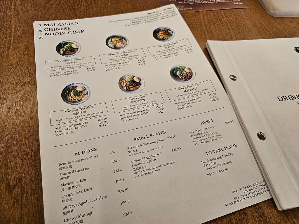 They have 2 different menus, noodles for lunch and sharing dishes for dinner. I visited them for lunch, so I had a choice of 4 noodles and 2 rice dishes priced between RM 18 and RM 26