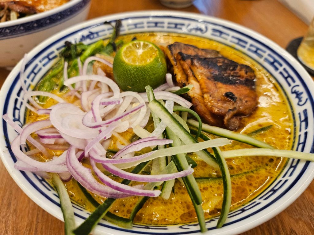 I had the 50-tale Nonya Laksa, which came highly recommended by my colleague. Different from other laksa, there were cucumber strips and raw onion slices, which reminded me more of assam laksa. You can have it as a vegetarian meal, which is RM 22, or add toppings of beer-braised pork belly at RM 28 and poached chicken slices at RM 26. While the broth of the noodles was coconut-based, it was surprisingly light and paired well with chewy noodles and pork belly. The added cucumber and onions added a refreshing crunch and spice to the noodles, which helps to cut some of the lemak from the coconut milk