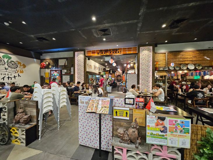 They shifted most of their furnishings and decor from their Liang Court outlet to the Great World to immerse their guests in the Okinawan atmosphere with lanterns, straw blinds, and background music matching the experience