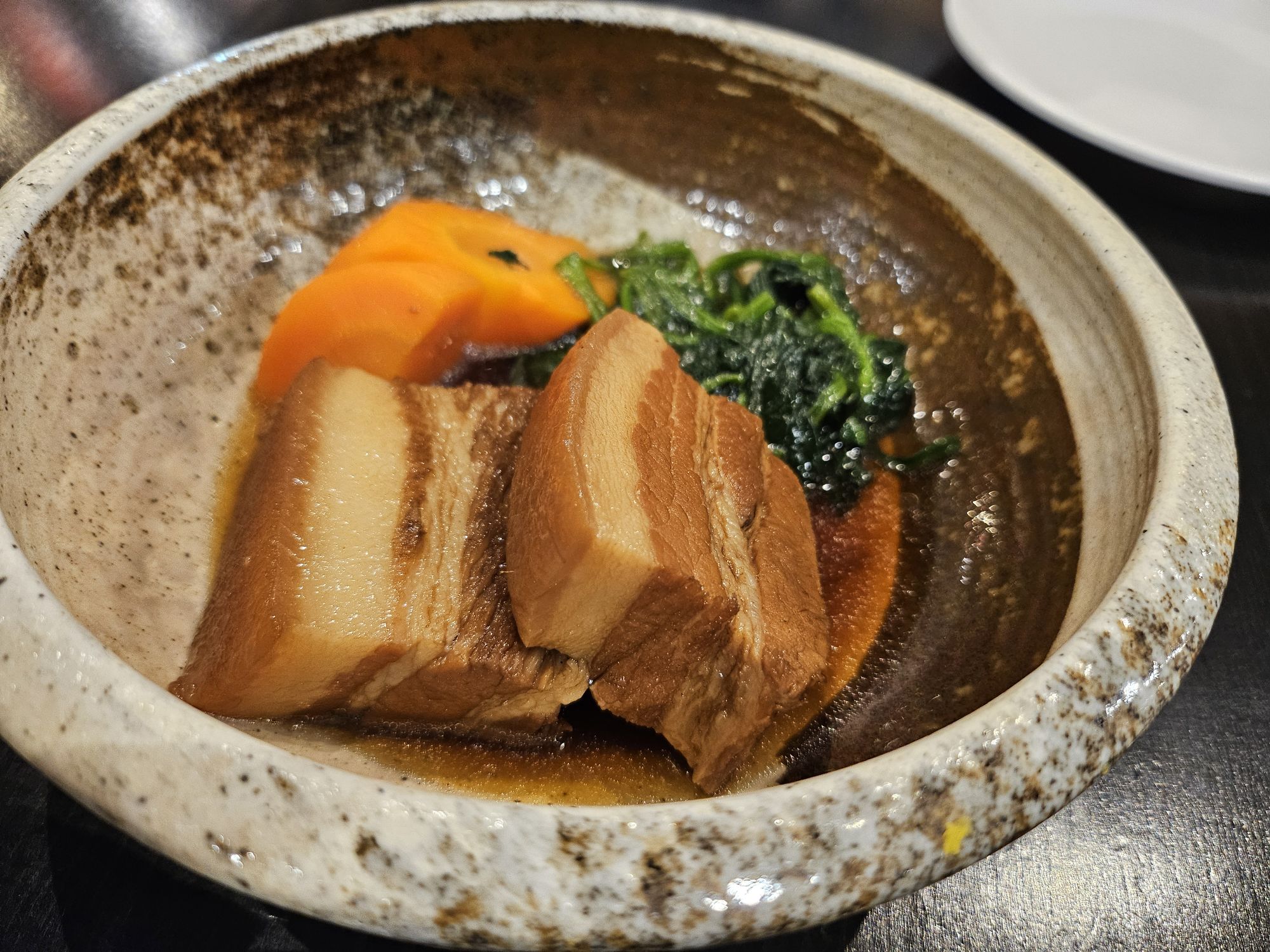 Next, we ordered some of the speciality dishes from Okinawa, like the simmered pork belly and stir-fried bittergourd with egg and tofu, which is the Chinese cuisine influence. While they do look pretty much like the ones we have in Chinese restaurants, the flavours are slightly different. The dishes are lighter and less sweet and oily compared to the Chinese versions, and you can taste the savoury flavours from the Japanese condiments used, like the soy sauce and mirin. I love bittergourd, so the dish was great for me with crunchy bittergourd amongst soft and fluffy egg and tofu, while my friend found it slightly bitter