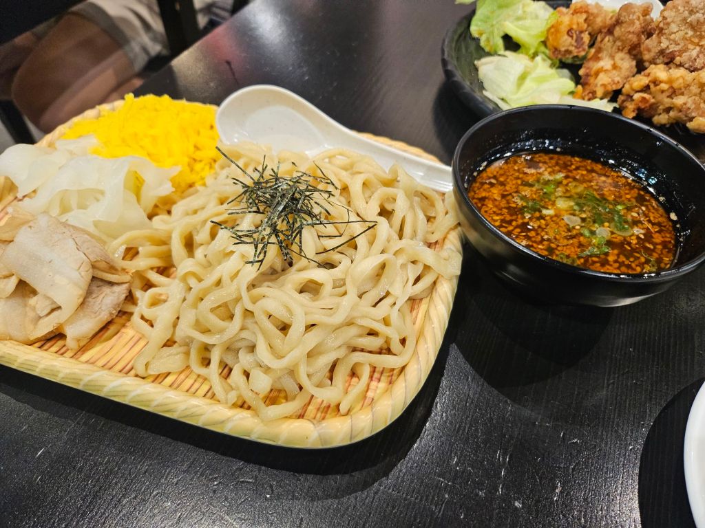 We ordered 2 noodles, the Okinawan Soup noodles, which came with big pieces of braised pork belly, half an egg, seaweed and ginger. The other noodles were the cold noodles with hot soy sauce dipping sauce and pork belly slices, cabbage and egg slices. Firstly, unlike Japanese ramen, the noodles were more like the texture of our ban mian or handmade flour noodles, which are more chewy in texture. The soup was also lighter in the Okinawan version, and the dipping sauce for the cold version was rather spicy. I prefer the cold noodles with the usual Tsukemen dipping sauce in comparison