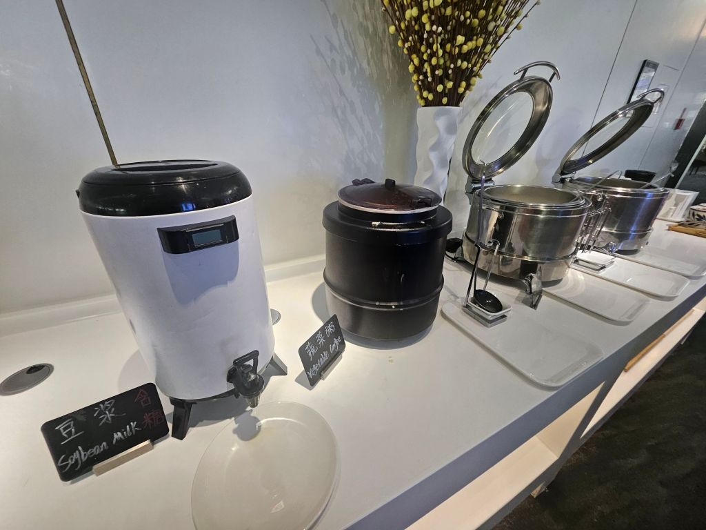 Some of the hot food available were mainly steamed buns, steamed sweet potatoes, corn and fried sausages. I assumed they served some breakfast items since most of the food was cleared by the time we got into the lounge. They also had hot congee and millet porridge. One of the better offerings was the live noodle station, which served Zhajiangmian (dry minced pork noodles), beef soup noodles, and soup noodles with vegetables. The broth was hot for the soup noodles I got, but it was a more bland version and not very tasty