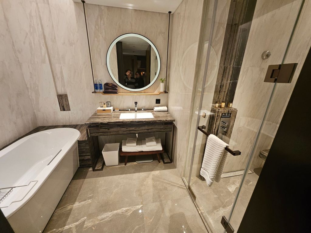 The toilet and bathroom were separated, which is good for 2 people staying in the room, and there was a separate dressing room area just outside the toilet where you can store your luggage or hang your clothes. The usual amenities like an electric kettle, coffee, tea and a safe were also provided