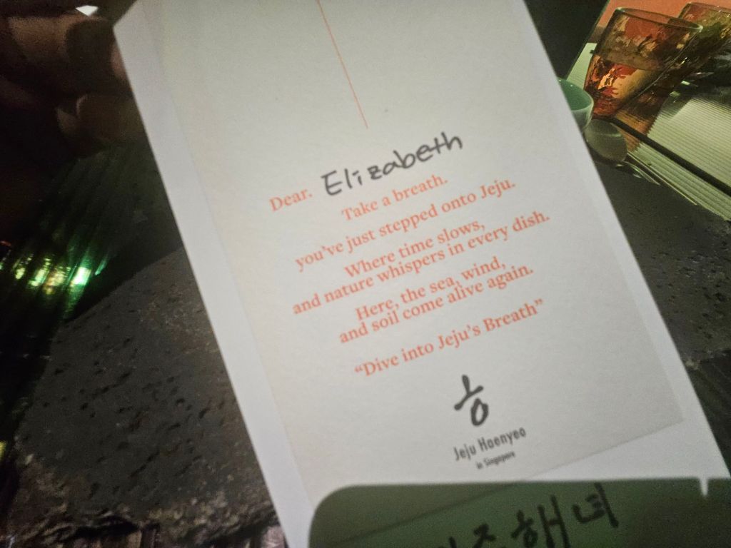 These days, having fantastic food is no longer enough, and some diners look for either dining paired with performances or something we call immersive dining. Having been to 2 immersive dining experiences, Andsoforth and Absurdities, I was very interested in Jeju Haenyeo since it centred around Korean Cuisine and immersive storytelling