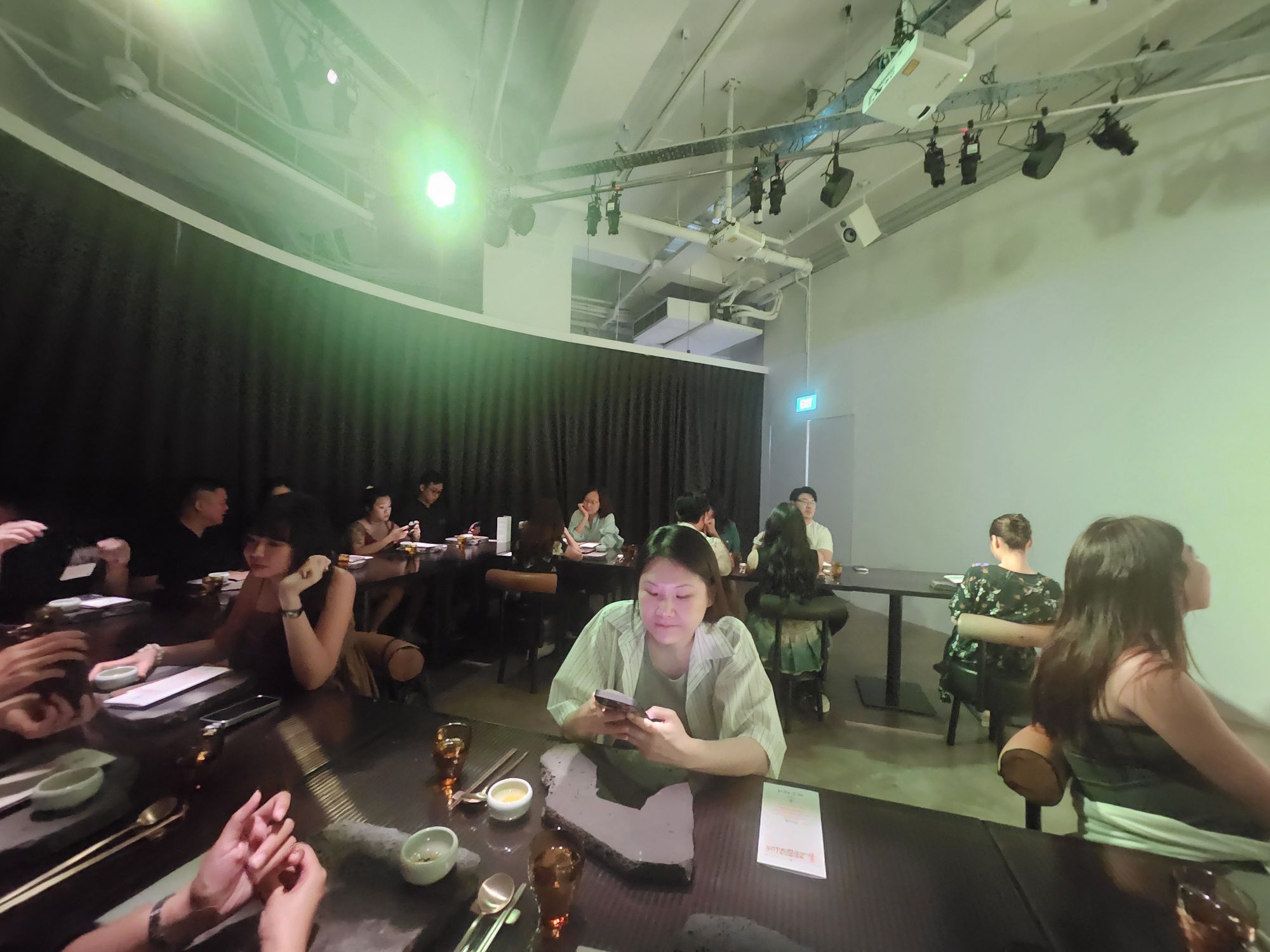Beyond the first set of curtains, we were then led into another white space with tables arranged to face a white wall, which would act as the canvas for the whole dinner performance. Seating is limited, and it is a reservations-only experience